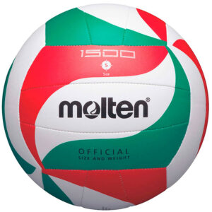 Balón de voleibol Molten 1400. Este balón de entrenamiento está fabricado en piel sintética suave y es adecuado para un uso intensivo. Está cosido a máquina, lo que lo hace muy duradero. Es un balón de entrenamiento ideal para jóvenes jugadores y para escuelas. Además, tiene el tamaño oficial y el peso oficial.
